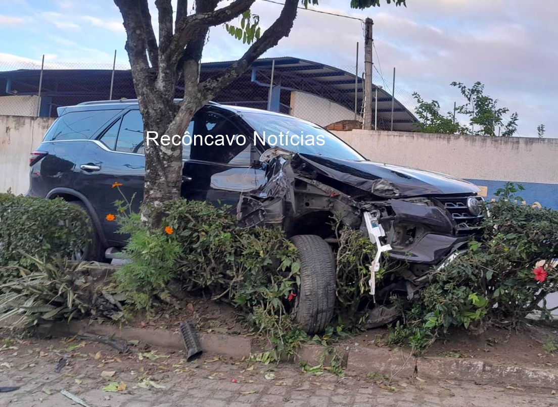 Um motorista de uma Hilux, que não teve o nome divulgado, perdeu o controle da direção do veículo e colidiu em um árvore na Rua da Rodagem, no centro da cidade de Amargosa, na tarde desta segunda-feira (06).